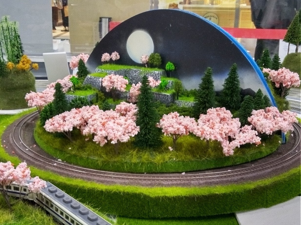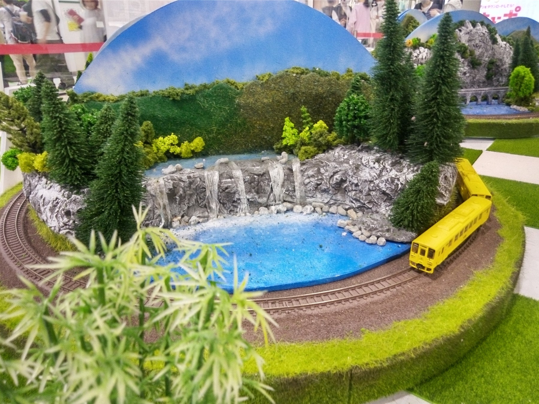 イベント期間中に継続実施するのは、「『大分×小田急』盆ラマ展示」です。大分県を代表する観光地・別府や由布院、小田急沿線を代表する観光地・箱根など、各地の自然と季節感の表現にこだわった盆栽のようなジオラマに、さまざまな特急列車の模型が走ります。
