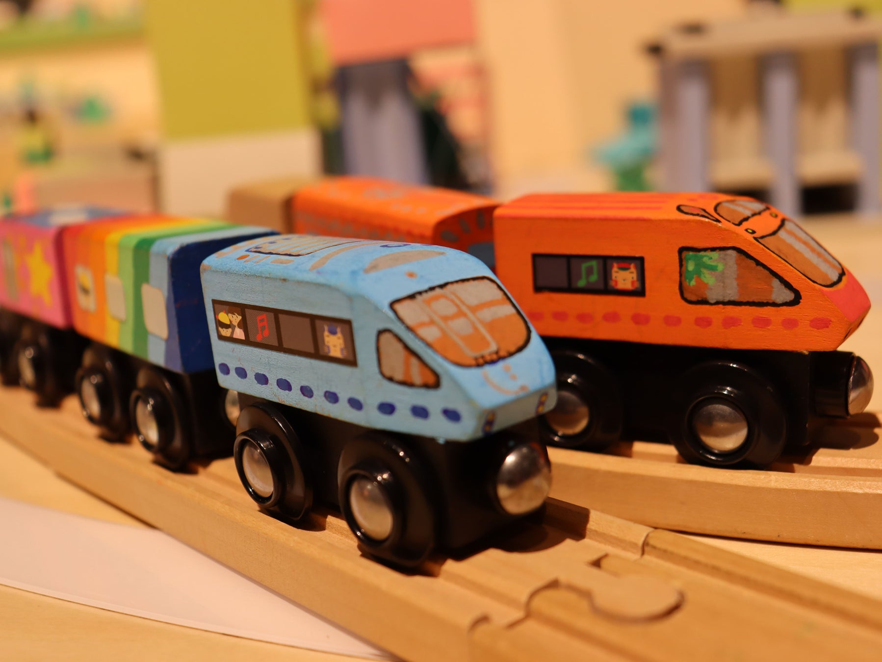 お子さま向けの木製鉄道玩具「moku TRAIN」を作って遊べる「moku TRAIN Garage」が登場します。当館限定の「ぬりペタ moku TRAIN(ロマンスカーGSEタイプ)」は、好きな色を塗り、シールを貼ることで、世界に一つだけのmoku TRAINを制作いただけます。また、JR九州の特急列車も販売し、いずれかの車両を購入いただいた方は、moku TRAIN Garageに設置した線路に車両を走らせることができます。