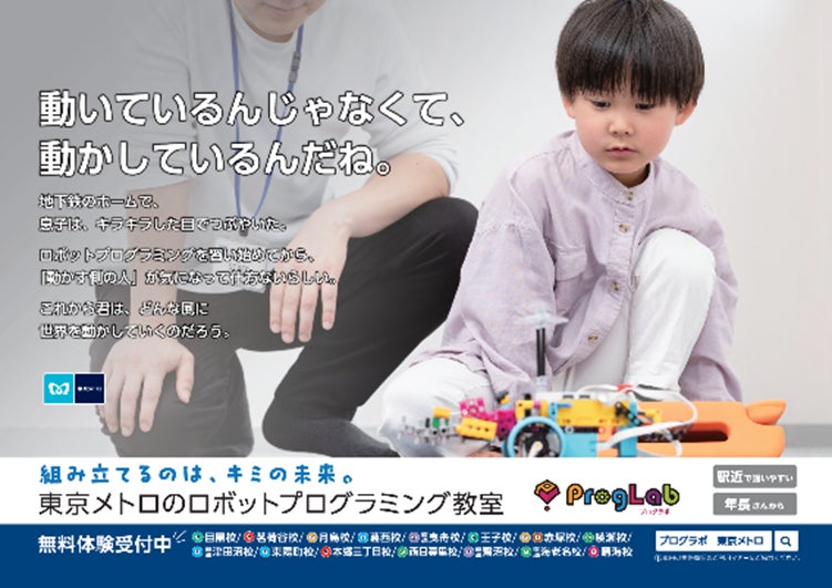 このたび設立する東京メトロエデュケーショナルは、プログラボが理念に掲げる「未来を担う子ども達の『夢を実現するチカラ』を育む」ことを目指し「東京メトロ×プログラボ」の教室運営を行っていきます。