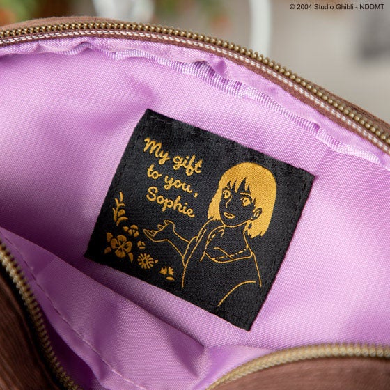 内生地は落ち着いたパープルに、ハウルと、ハウルの言葉がデザインされた織りネームが付いています。