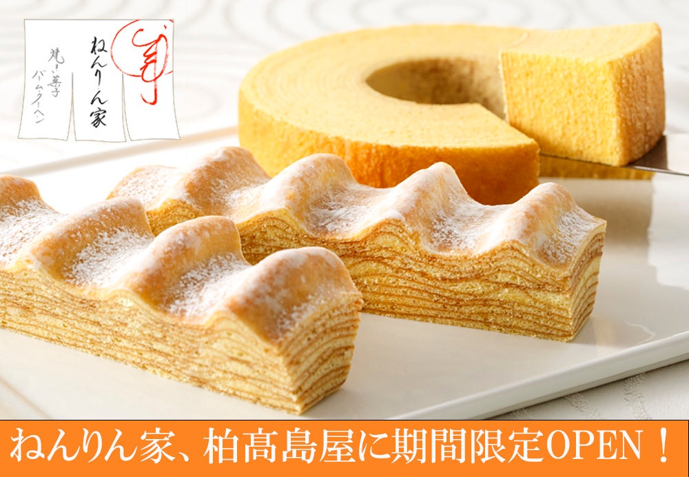 東京・銀座に本店を構える『ねんりん家』は、真っ⽩なのれんが印象的な ⽇本うまれのバームクーヘン専⾨店。誕⽣と同時にたちまち⾏列店となり、東京を代表する味として愛されています。そんな『ねんりん家』が4月17日(水)→23日(火)まで、柏高島屋に期間限定で登場!最も⼈気の代表作「マウントバーム しっかり芽」はもちろん、ねんりん家の歴代商品の中でもファンが多い「マウントバーム お抹茶」も登場します。ぜひこの機会に『ねんりん家』のバームクーヘンをお楽しみください。