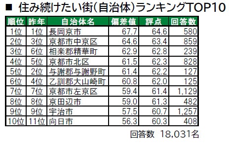 ■住み続けたい街(自治体)トップは、3年連続で長岡京市