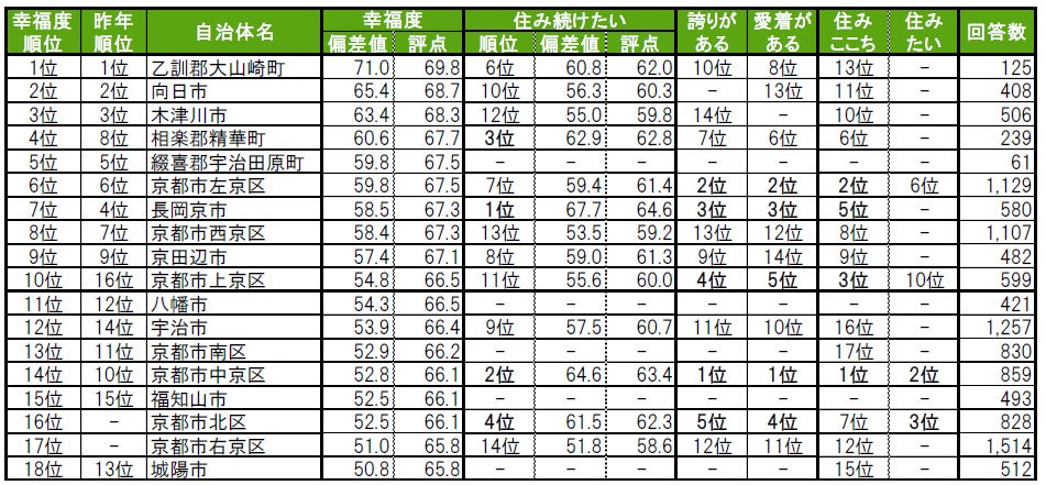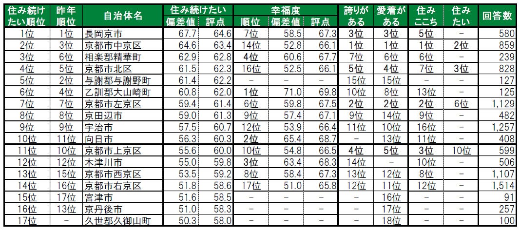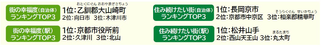 いい部屋ネット「街の幸福度 & 住み続けたい街ランキング2024<京都府版>」(街の住みここちランキング特別集計)発表