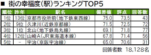 ■街の幸福度(駅)トップは、昨年13位から順位を上げた京都市役所前