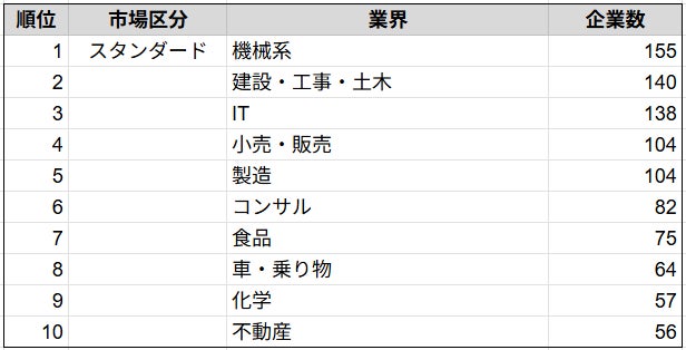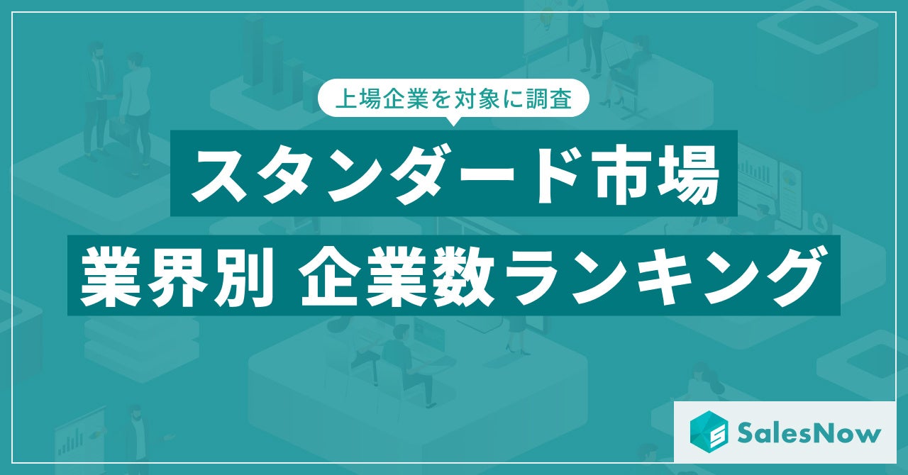 株式会社SalesNow(本社:東京都渋谷区、代表取締役:村岡功規、以下「当社」)は、国内540万社の企業情報を完全網羅した日本最大級のデータベース「SalesNow DB」より、スタンダード市場に上場する企業を対象に、業界別の企業数を集計した「スタンダード市場/業界別 企業数ランキング」を発表いたしました。