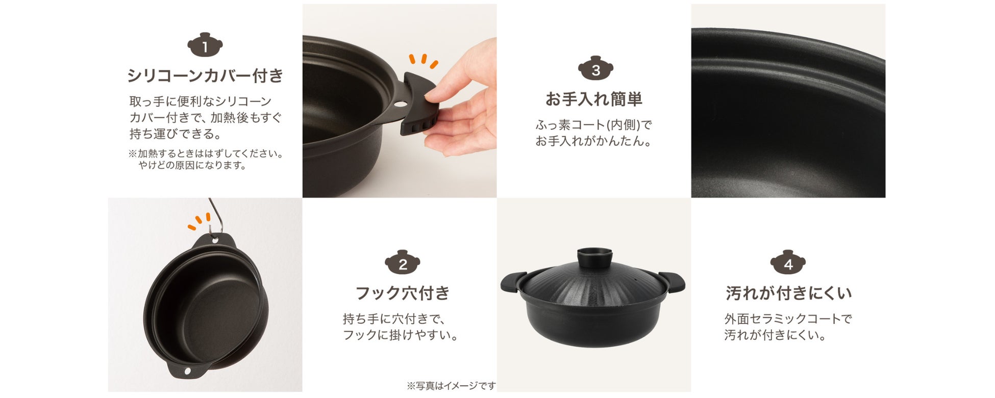 さらに、今年は持ち運びに便利なシリコーンがカバーがさらに分厚くなりました。加熱後も安心してすぐに鍋を運ぶことができます。