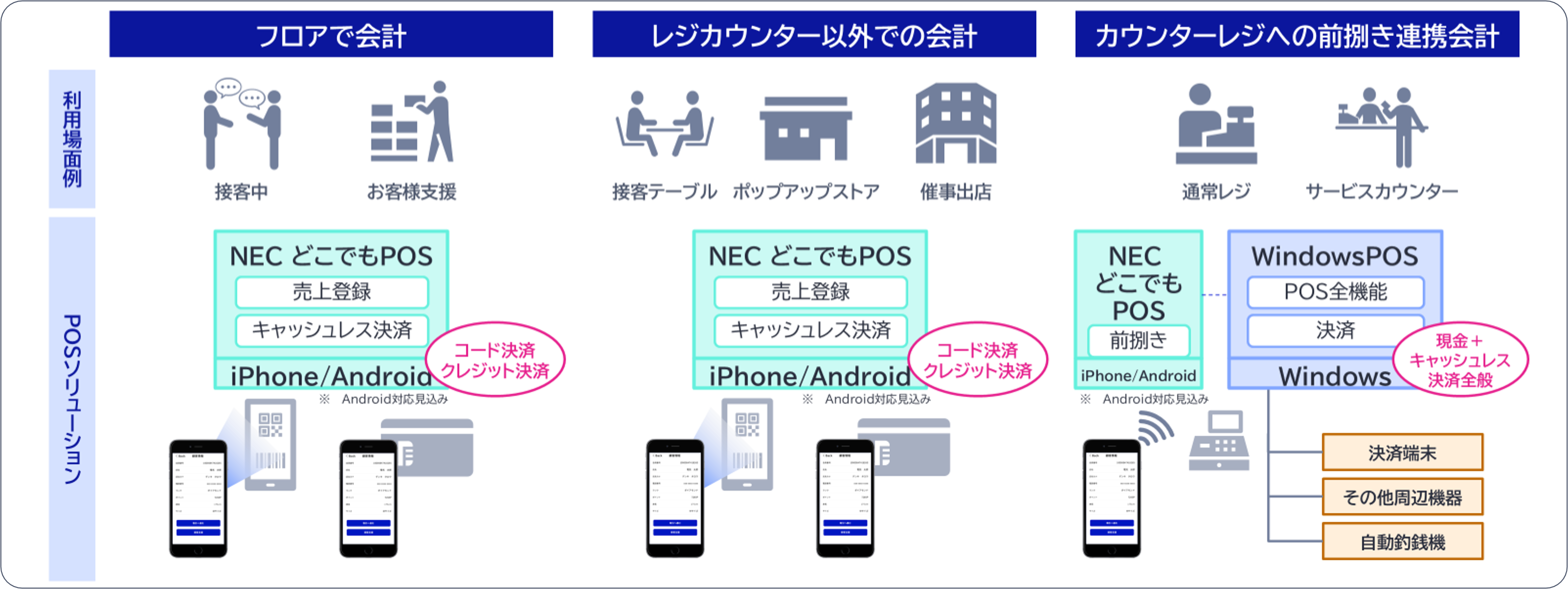NEC、スマートフォンで決済も前捌きも行える「NEC どこでもPOS」を開発