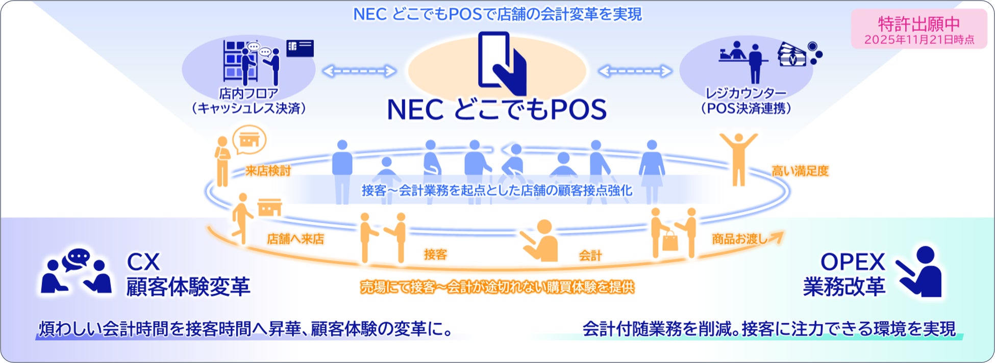 日本電気株式会社(本社:東京都港区、取締役 代表執行役社長 兼 CEO:森田 隆之、以下 NEC)は、小売業における人手不足やキャッシュレス化の進展といった課題に対応するため、売場のどこででも商品登録や決済を行える「NEC どこでもPOS」を開発しました。