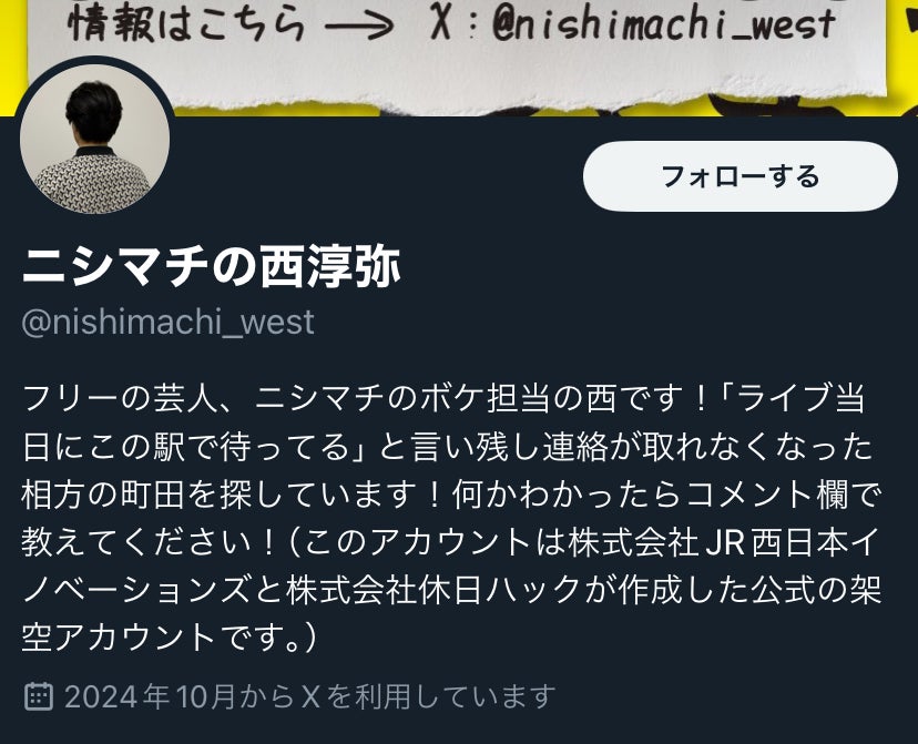 ヒントが隠されている”フリー芸人コンビ「ニシマチ」”西のXアカウント投稿はこちらから!