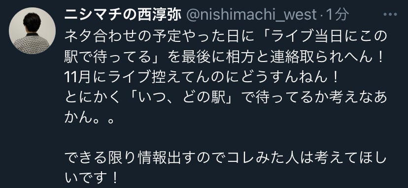 “フリー芸人コンビ「ニシマチ」”の町田が突然姿を消し、相方の西が「みんな、助けて!相方がいなくなった!」とXで緊急SOS!