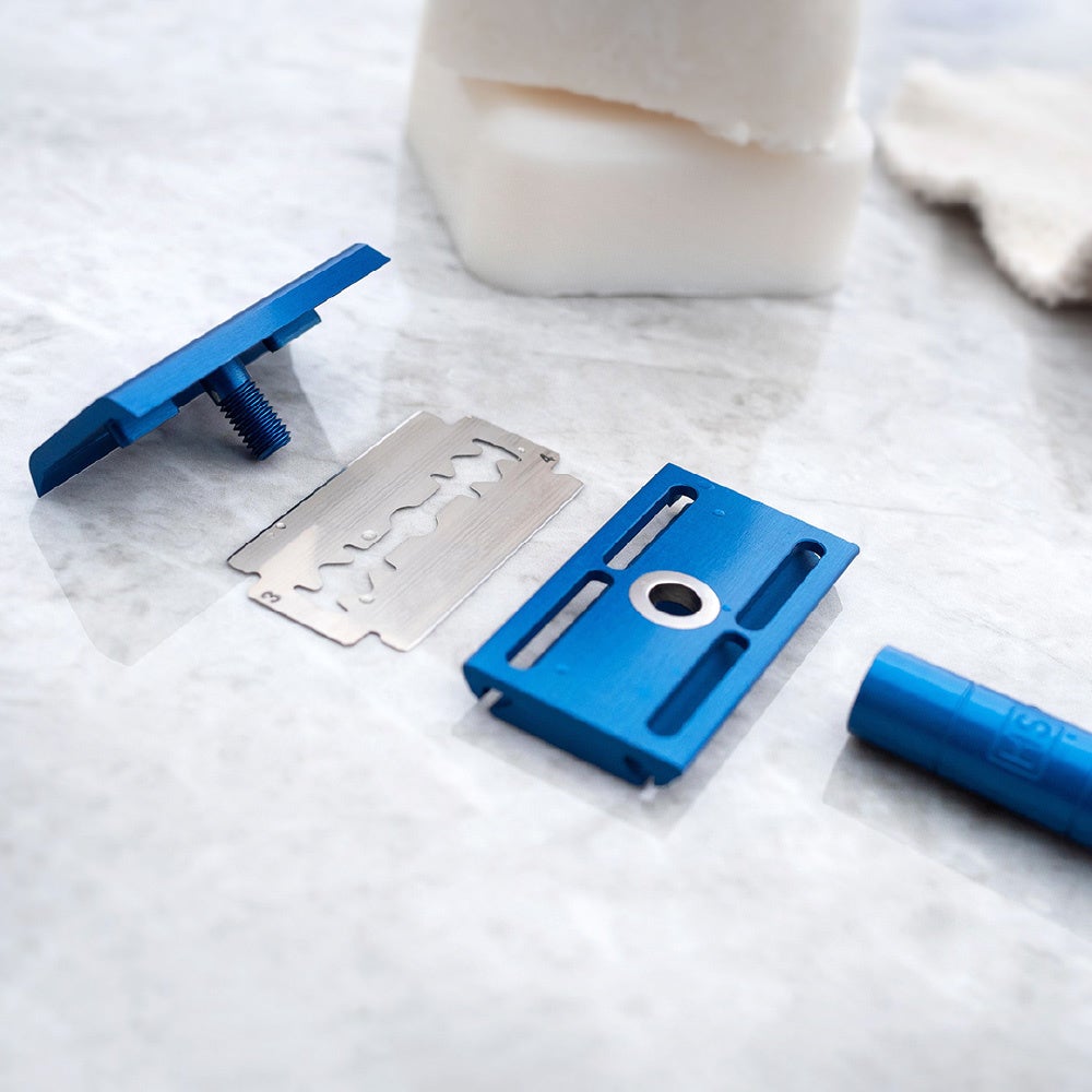 HENSON SHAVINGは市販の安価な両刃を使用できるので、1枚約50円(もっと安いものもございます。)で1週間に一度刃を変えるとしても、替刃のランニングコストは一日約7円くらいです。長期的にみていただくと、かなりお得なのがご理解いただけるかと思います。また、本商品にはすぐ使えるように5枚の替刃が付属しております。