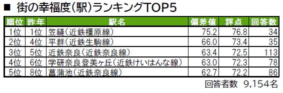 ■街の幸福度(駅)トップは、2年連続で笠縫