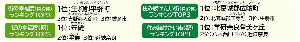 いい部屋ネット「街の幸福度 & 住み続けたい街ランキング2024<奈良県版>」(街の住みここちランキング特別集計)発表