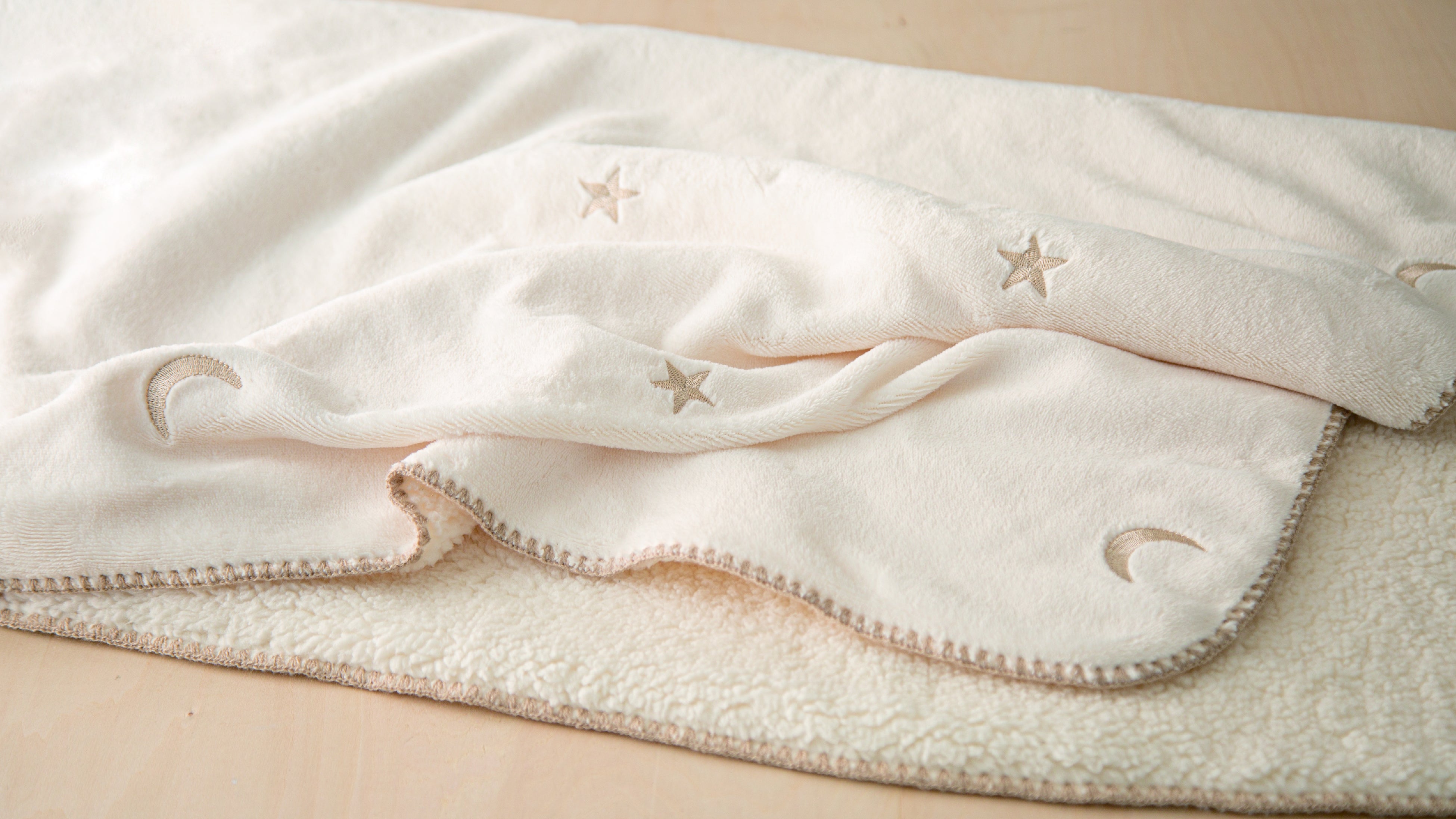 赤ちゃんにさっとかけられるふわふわ軽い裏ボアのブランケットは、吸湿発熱素材「Nウォーム」と「Nウォームダブルスーパー」の2種類の展開です。ふんわり柔らかい肌ざわりに、抜群の保温力で掛けた瞬間からあたたかくなります。70×100cmで持ち運びにも便利なサイズに設計されています。「Nウォームダブルスーパー」には、フチに貝殻をイメージした可愛い波型ステッチがあしらわれており、小さな刺繍とともに愛らしい印象です。