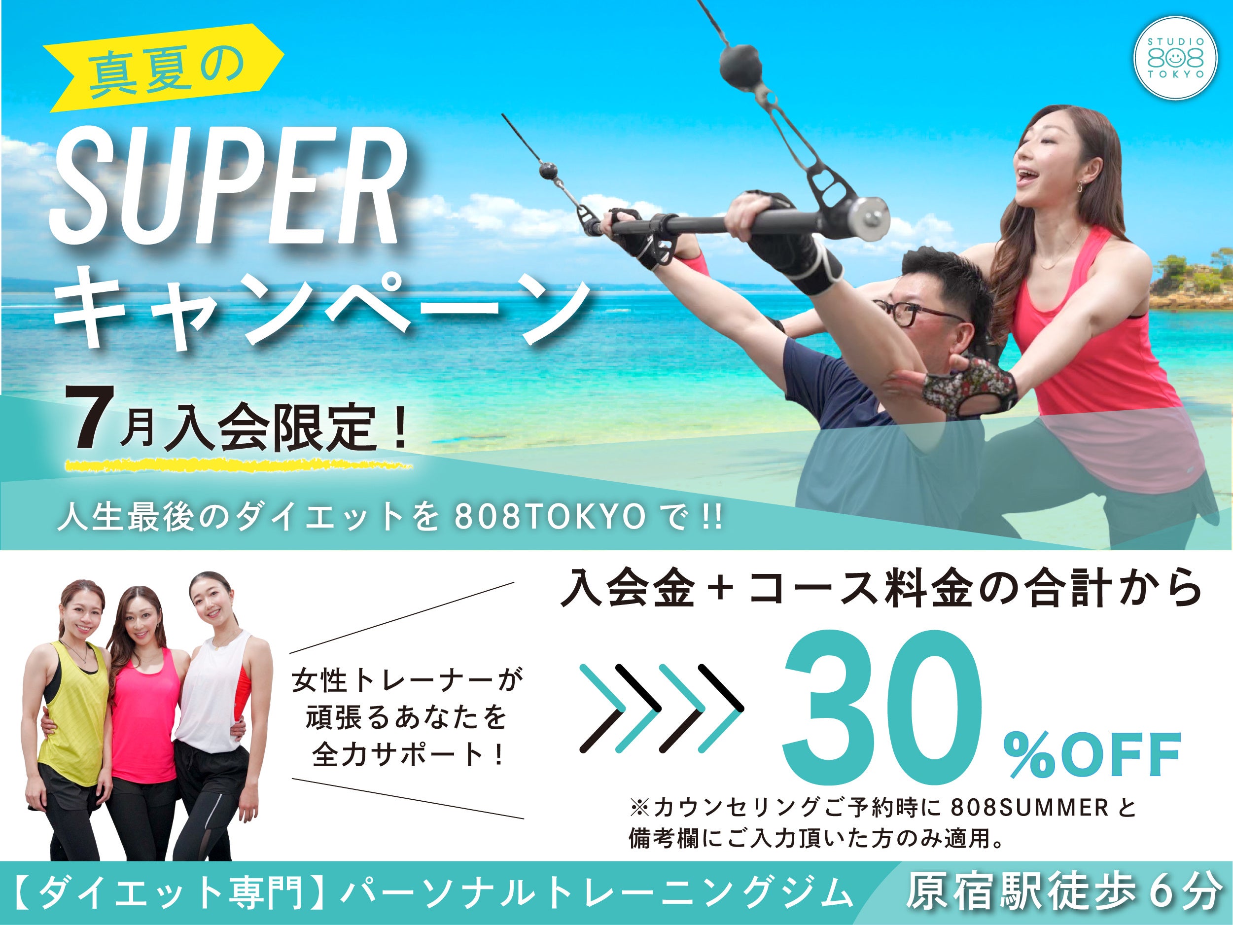 【東京|原宿 表参道・女性トレーナーダイエット専門ジム】芸能人も通う人気パーソナルトレーニングジム "808TOKYO" が、過去最大30%割引の【夏のSUPERキャンペーン】を開始!7月入会者限定