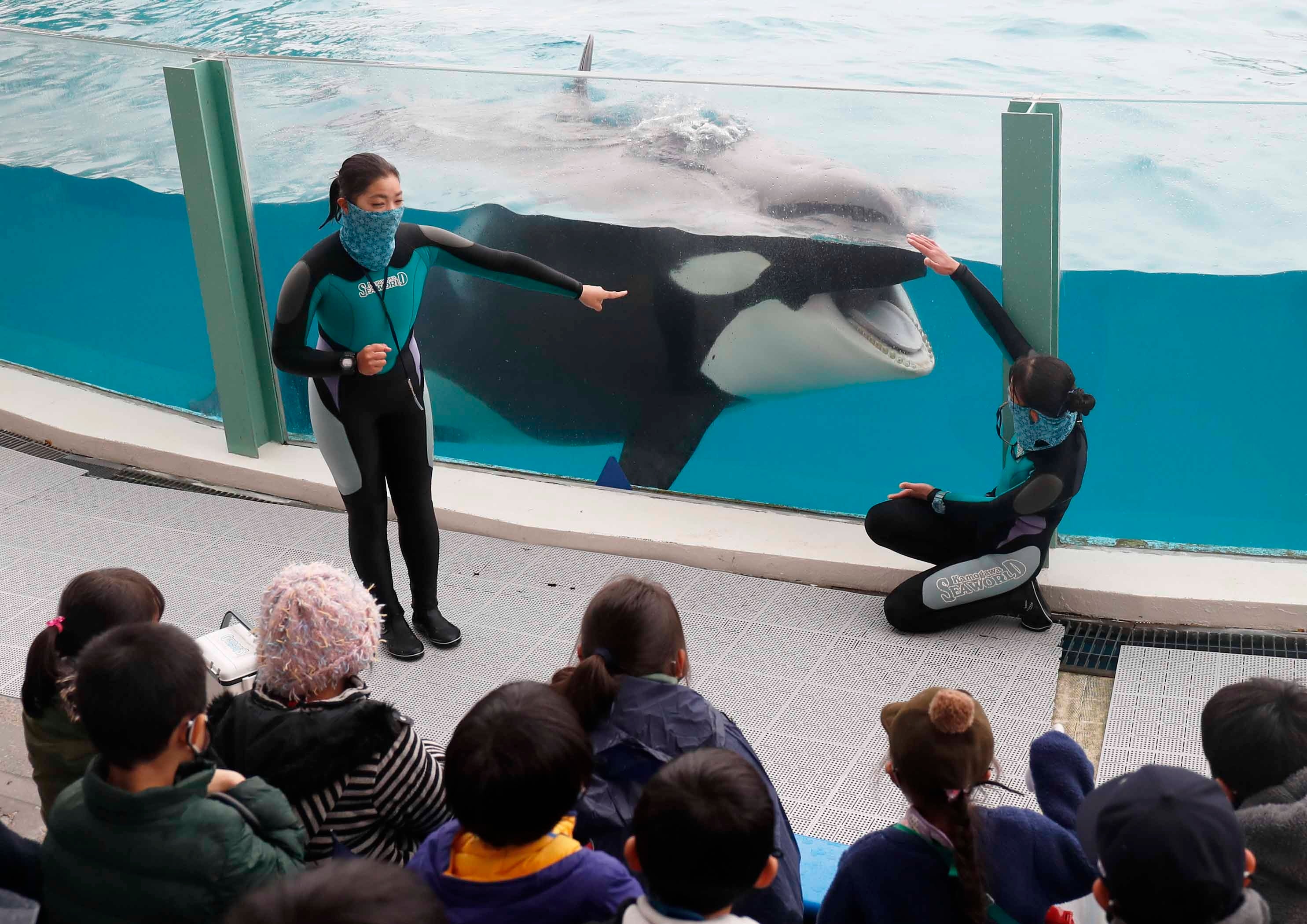 ウインタースクールで、寒い北風の中でも元気いっぱいなシャチやアシカたち姿をじっくりと観察してみませんか。