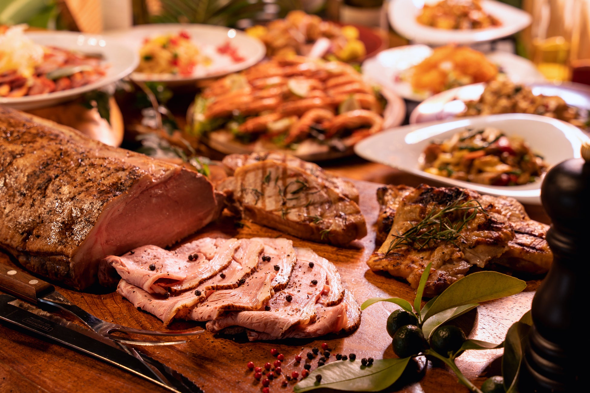 ランチの目玉は、シェフおすすめの ”島豚またはサーモンの炙り” とお客様自身でカスタムする”チキン照り焼きとフィッシュフライのピタパンサンド”です。クリスマスには、グリルコーナーの特別料理として”ローストポークグリル” と ”シーフードパイ包み焼き”が登場します。