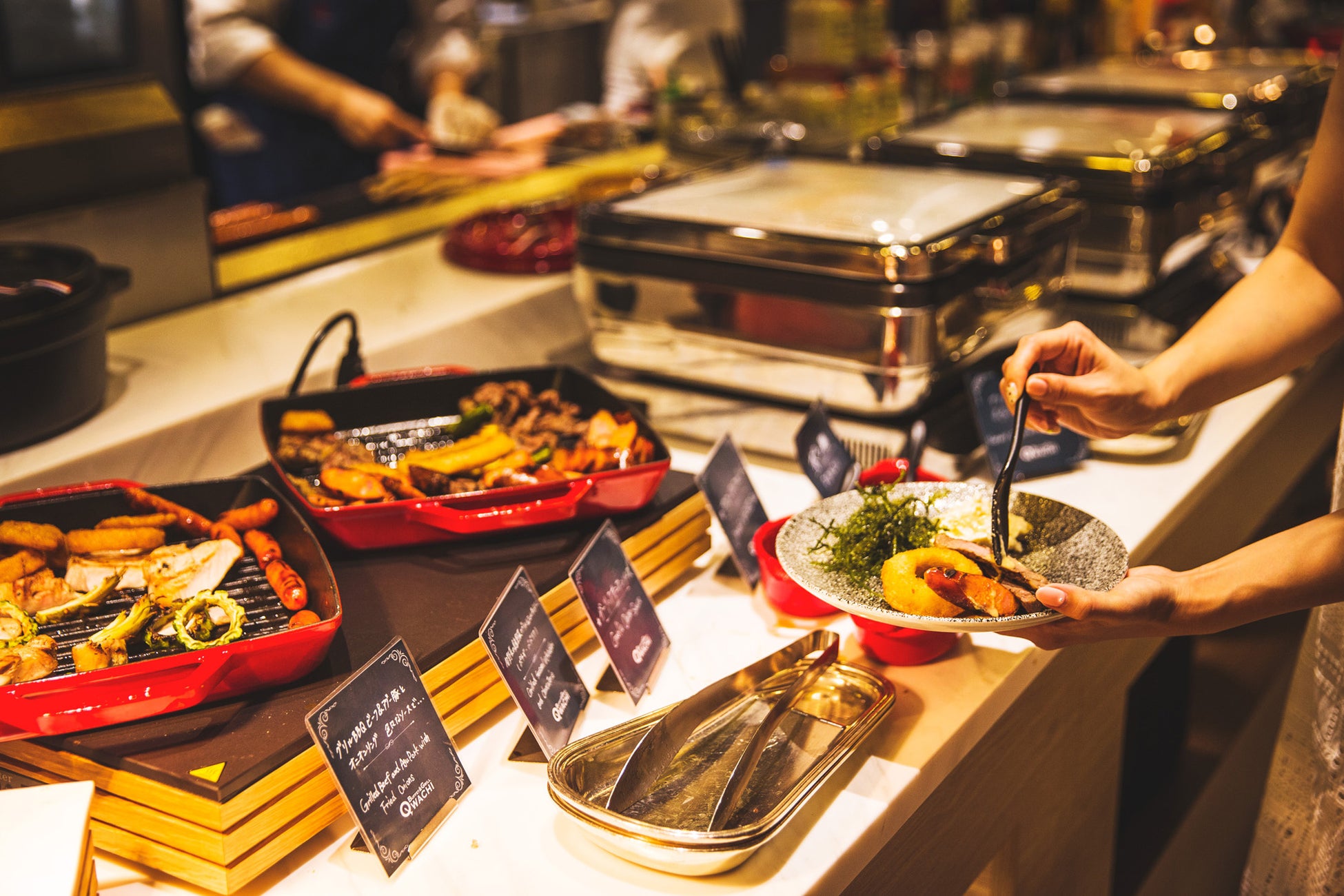 さらに、Buffet & Grill QWACHI(クワッチー)では2022年12月1日(木)より冬メニューの提供を開始します。グラタン、ビーフシチューなど冬定番の温かいメニューをはじめ、季節限定のお料理をご堪能いただけます。クリスマスの12月24日(土)・25日(日)のランチには特別に”ローストポーク グリル“ と ”シーフードパイ包み焼き”がグリルコーナーに登場します。