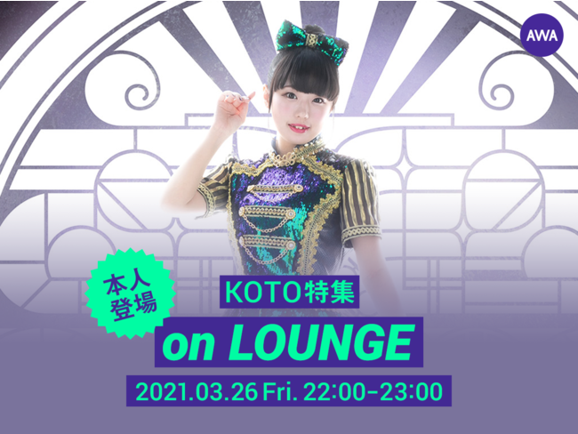 AWA株式会社(本社:東京都港区、代表取締役CEO:冨樫晃己)が運営する、サブスクリプション型(定額制)音楽ストリーミングサービス「AWA(アワ)」は、ユーザー同士がリアルタイムに同じ空間で同じ音楽を楽しみながら、チャットができるオンライン空間『LOUNGE』で、2021年3月26日(金) 22:00~23:00に、圧倒的なダンススキルを武器に独自の世界観を発信してきたソロアイドルKOTO本人が登場する特集イベントを開催いたします。