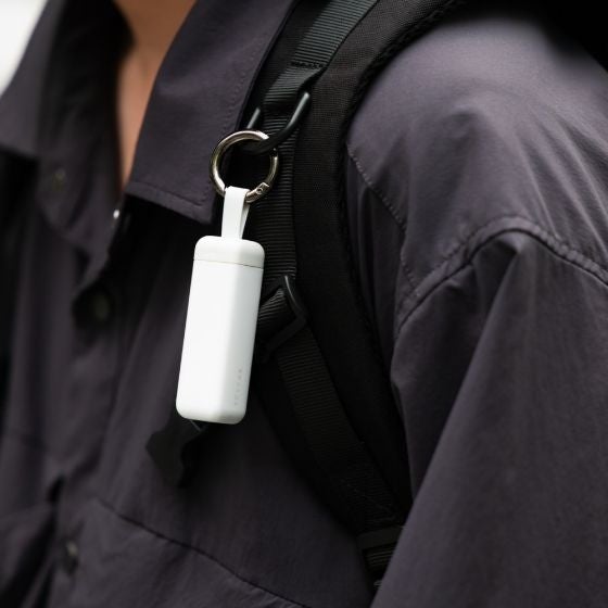ケースはループ付きで、カラビナやベルトにも装着可能。バッグの中などでも見つけやすく、紛失を防ぎます。