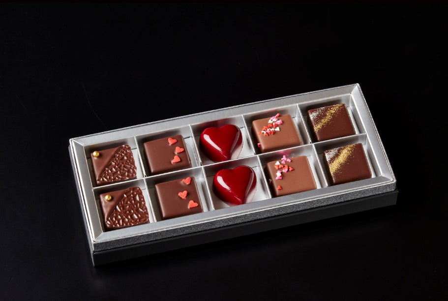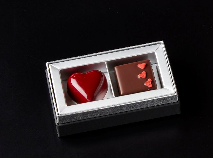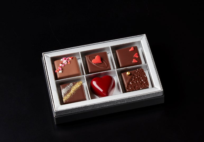 ハートをモチーフにした人気のバレンタイン期間限定デザインオリジナルチョコレートをボックスにてご提供いたします。自分へのご褒美やギフトにもお勧めの2個入り、6個入りと10個入りの計3種類をご用意いたします。