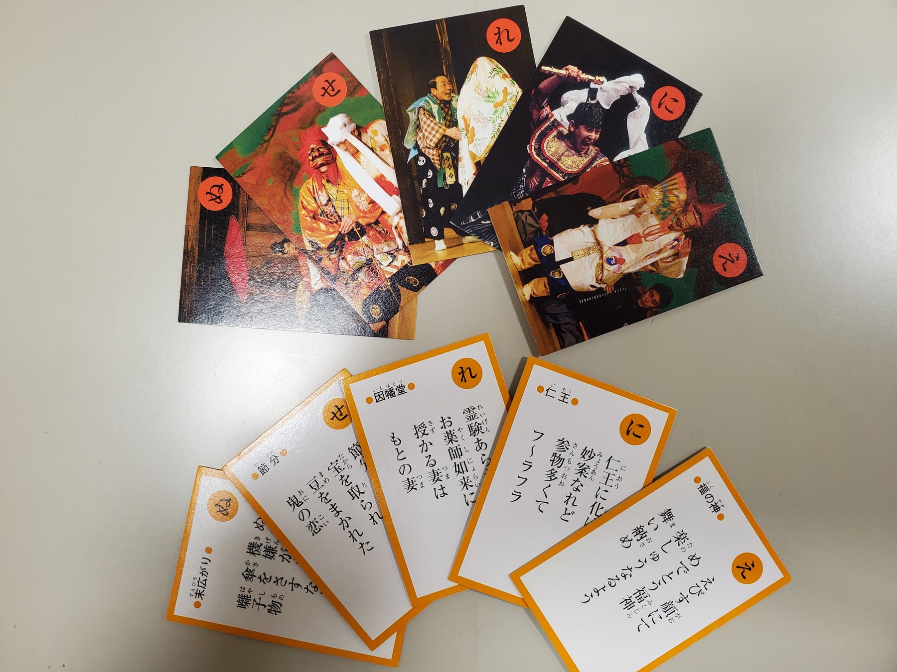 14:00~スタッフが「狂言かるた」やルールについて説明します。読み上げる文章に対応するカードを取る遊びを通じて、狂言にちょっと詳しくなろう!
