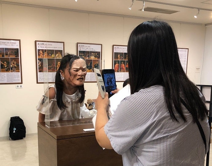16:30~ スタッフが能面についてや展示中の面について解説をします。解説後、能面の裏から顔を合わせて記念撮影をしよう!