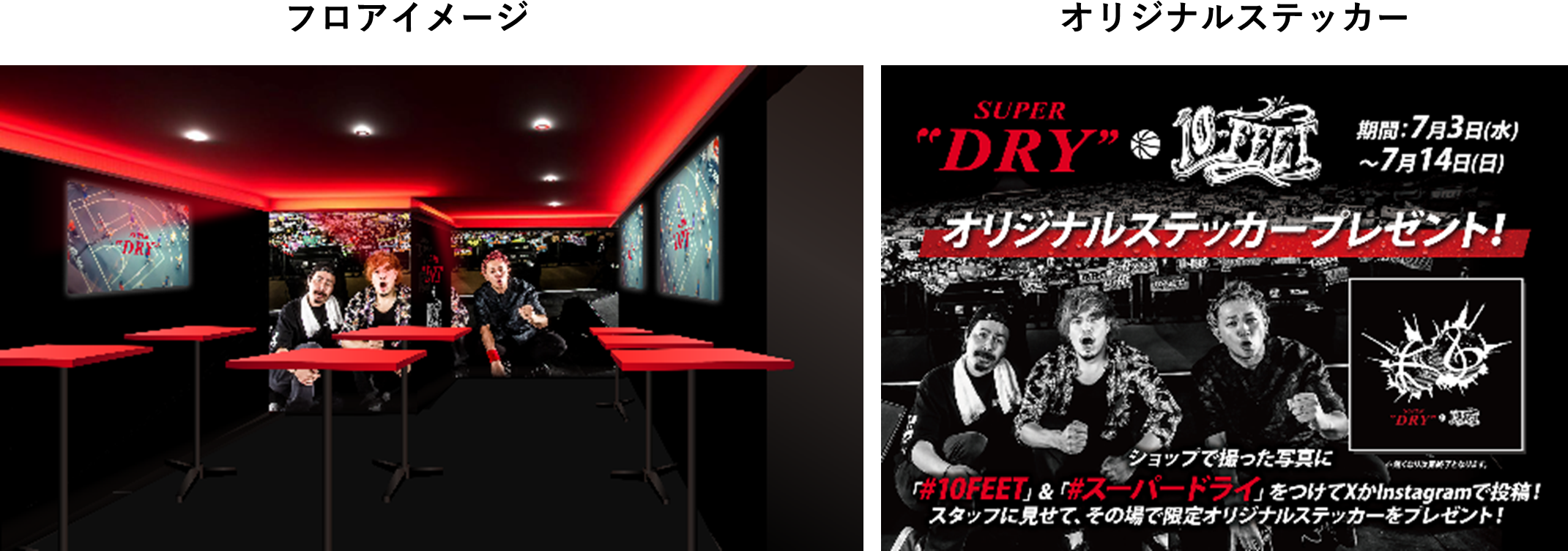 期間中に来場してコンセプトショップ内を撮影した写真をSNSに投稿いただくと、ここでしか手に入らないショップ限定のオリジナルステッカーをプレゼントします。その他、7月3日に発売した「10-FEET」のメンバーの写真がデザインされた『アサヒスーパードライ スマート缶』を販売します。