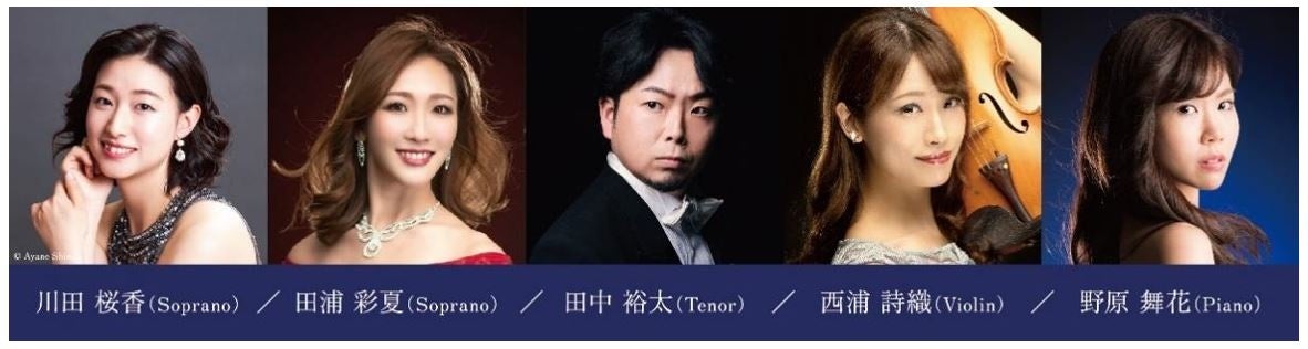 “癒しの五重奏”、3人の歌とヴァイオリンの優美な旋律をお楽しみください。皆さまのご来場をお待ちしております。