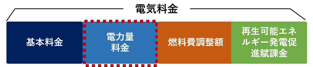 毎月届く電気料金の内訳は「基本料金」「電力量料金」「燃料費調整額」「再生可能エネルギー発電促進賦課金」の4つの項目で構成されています。「お礼の電力」でもらった電力は、毎月の「電力量料金」から、充当された電力分が割引されます。