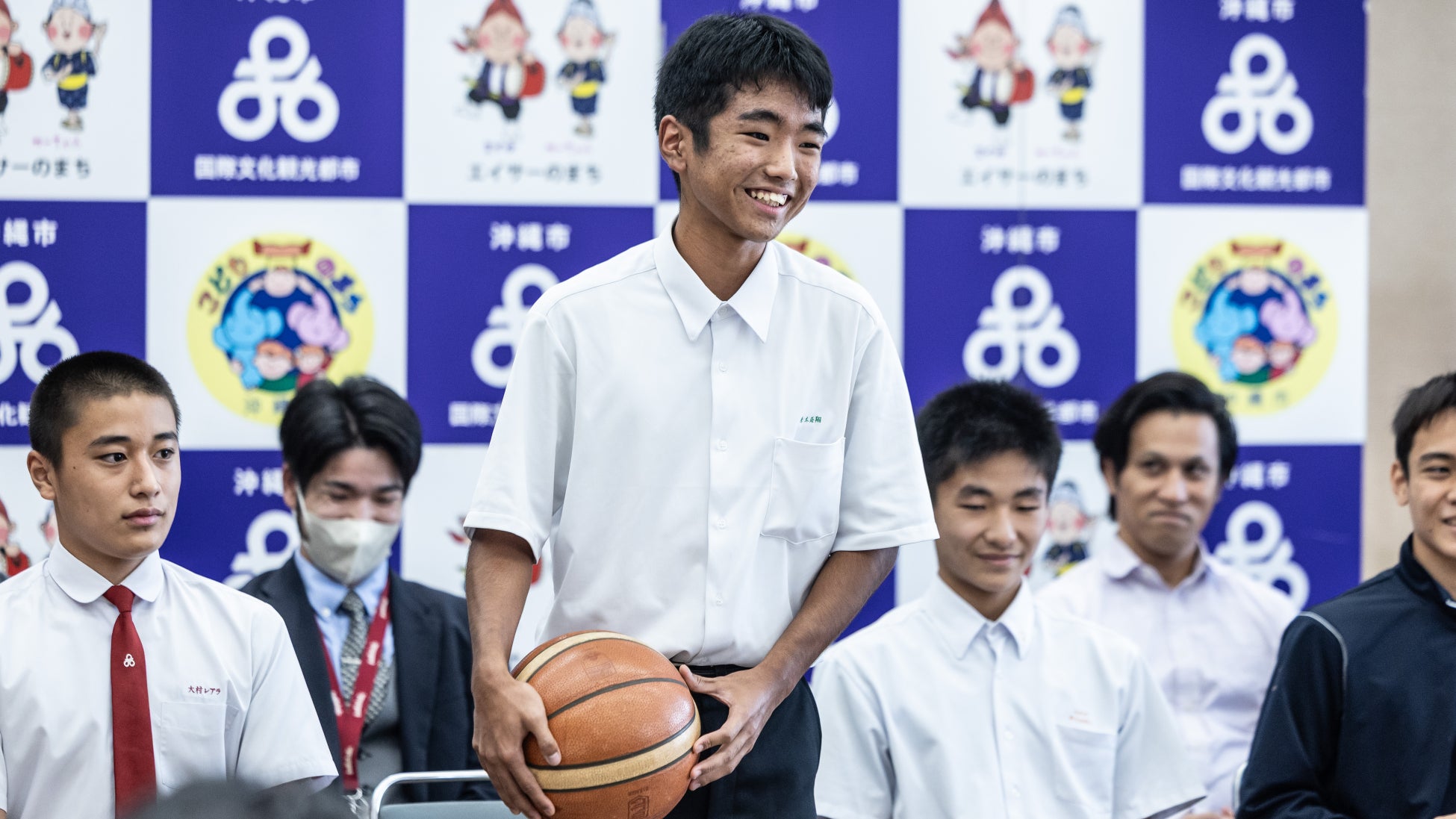 本日はこのような素晴らしい機会をいただき、本当に嬉しく思っています。僕たちが使っていたボールが、皆さまの日々の練習の役に立ち、少しでもバスケットボールが上手くなるきっかけになれば嬉しいです。一緒に沖縄市を盛り上げていけたらと思っていますので、引き続き応援をよろしくお願いいたします。