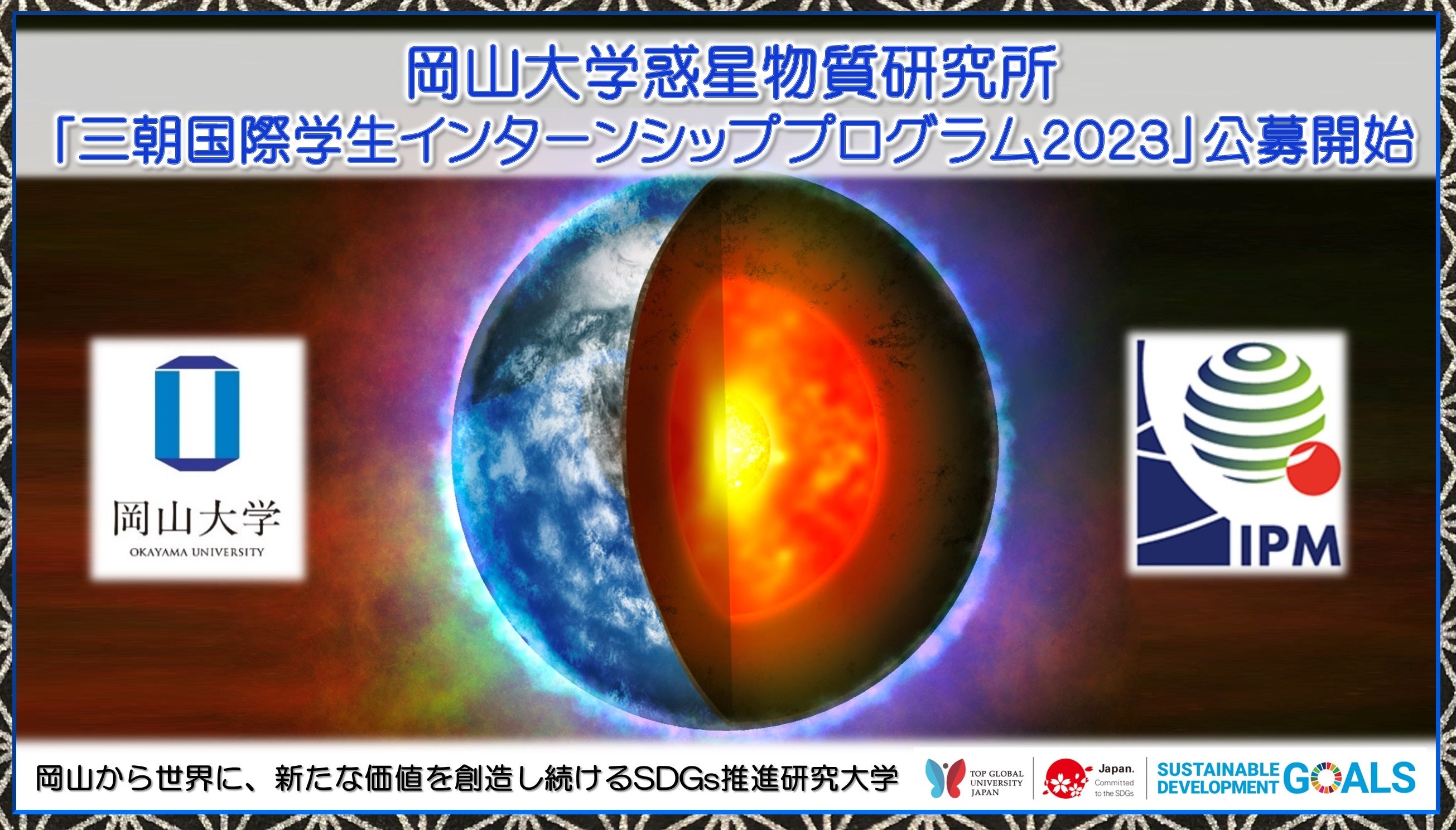 【岡山大学】惑星物質研究所「三朝国際学生インターンシッププログラム2023」公募開始(3/24締切)