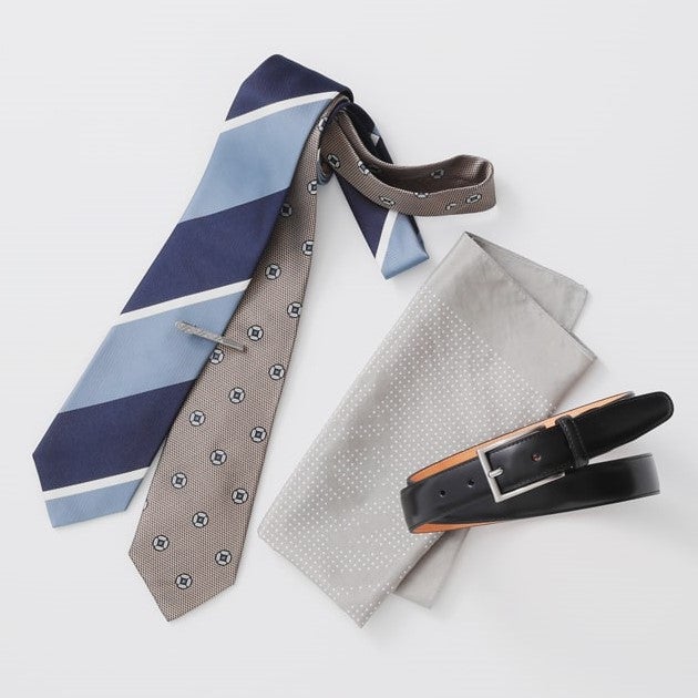 コーディネートにさりげなく艶感を与えてくれる小物。ドレススタイルに欠かせないチーフやタイホルダーは積極的に取り入れて。ベルトなどの革小物は、お気に入りがくたびれてきたら新調してきちんとアップデートしましょう。