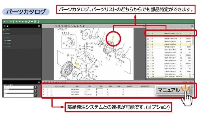 アフターメンテナンスに利用するパーツカタログやマニュアルのデータをWEBで配信できる、アフターサービスを効率化・収益化するソリューションです。