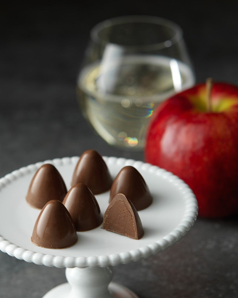 北海道余市産りんごを使用して作ったシードルを、ガナッシュに練り込んでいます。ガナッシュはすっきりとした味わいにし、シードルの香りが立つよう仕上げました。柔らかな食感と共に芳醇なリンゴの風味が口一杯に拡がります。