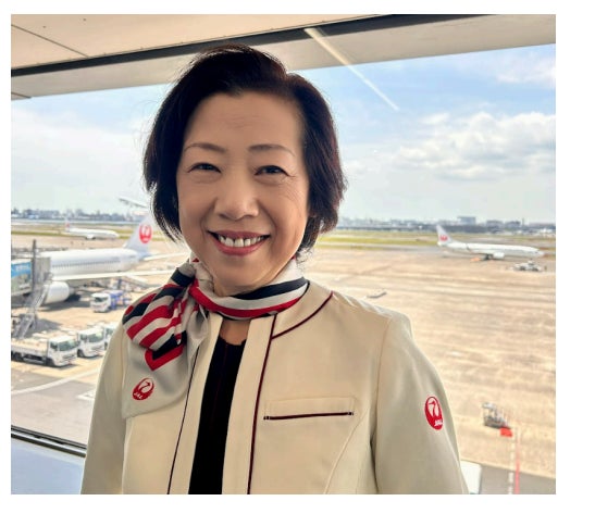 このたびは黄綬褒章受章の栄に浴し、身に余る思いでございます。 いつも傍でアドバイスしてくれる仲間に心から 感謝するとともに、JALグループで働く客室乗務員にとって名誉なことと大変嬉しく思います。
