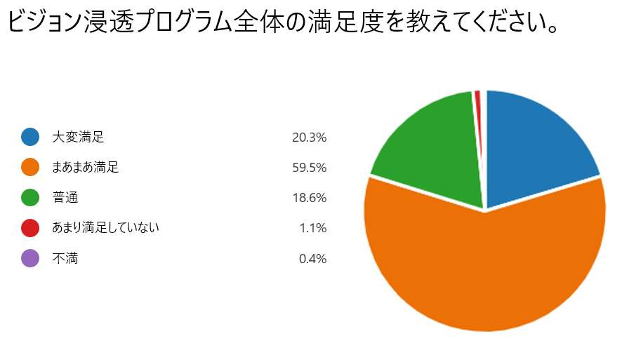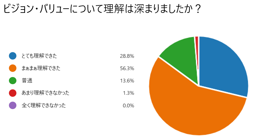 本プログラムの終了後、社員にアンケートを実施し、ビジョンの理解度を調査したところ、社員の8割以上(85.1%)が「とても理解できた」、「まあまあ理解できた」と感じていることが分かりました。