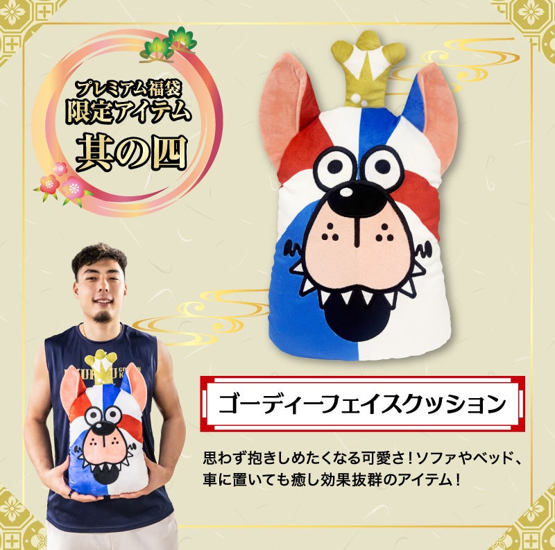 存在感抜群の青く光る「ネオン時計」や、選手デザインの「ふわふわブランケット」に加え、キングスグッズ初登場の「300ピースパズル」が必ず入っています。さらに、昨年大好評だった「選手カレンダー」と「ナイロンジャケット」は今シーズンバージョンの新しいデザインに!福袋でしか手に入らないアイテムが沢山詰まった、プレミアムな福袋をご用意しております。