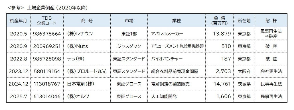 株式会社帝国データバンクは、2025年に発生した上場企業倒産の動向について調査を行った。
