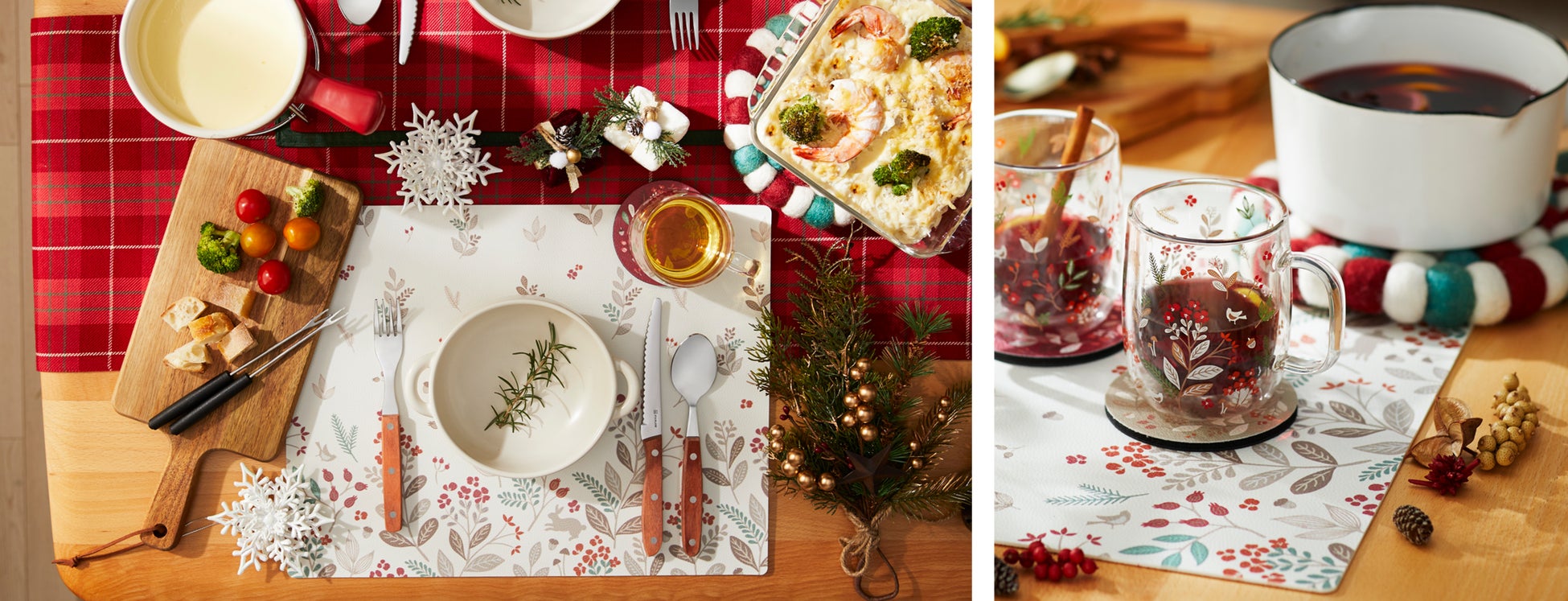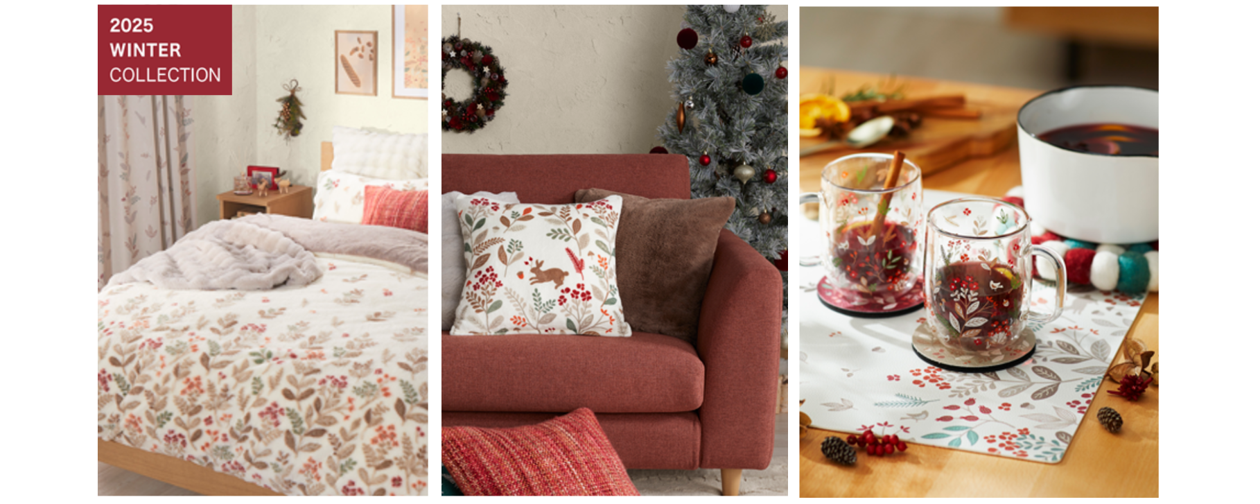 2025年冬のコレクションは、赤い柄のアクセントでクリスマスの特別感をプラスしながら、クリスマス後にも使いやすいナチュラルなデザインが特長。シーズンを通して長くお楽しみいただけます。