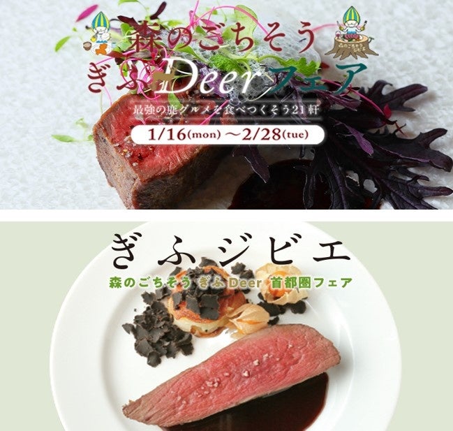 岐阜県内にて「森のごちそう ぎふDeer フェア」を開催。県内21店舗の人気飲食店で、期間限定の自慢の「鹿肉メニュー」が提供されます。また首都圏では「森のごちそう ぎふDeer 首都圏フェア」を開催。首都圏22店舗で、フェア限定の特別な「鹿グルメ」が提供されます。どちらの開催地でも、岐阜県の恵まれた自然でとれた森のごちそうを参加店舗で満喫いただけます。