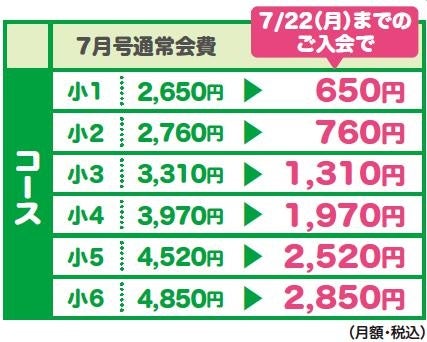 【特典1】通信教育(教材配送)7月号会費が2,000円割引