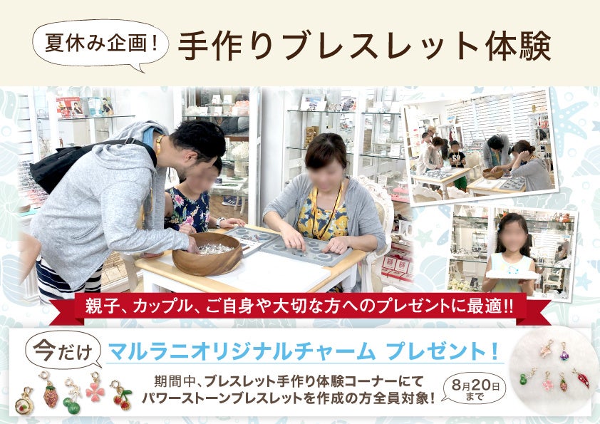 夏休みの思い出に、ご家族やご友人、カップルで、世界にひとつのオリジナルブレスレットを作成してみませんか?