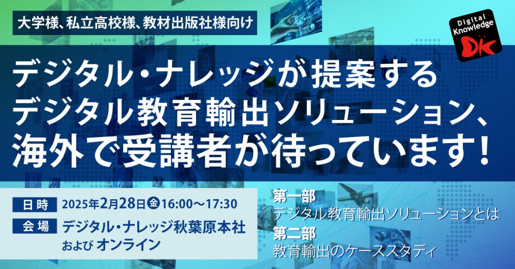 「日本の教育を海外へ展開」デジタル・ナレッジが提案するデジタル教育輸出ソリューション、海外で受講者が待っています《2/28(金)秋葉原会場&オンライン開催》大学様・私立高校様・教材出版社様向け