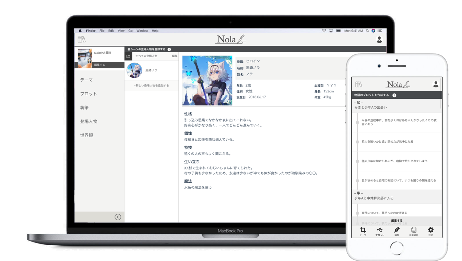 ■主な機能:原稿の執筆機能、プロットの作成/管理機能、登場人物・世界観の設定/管理機能