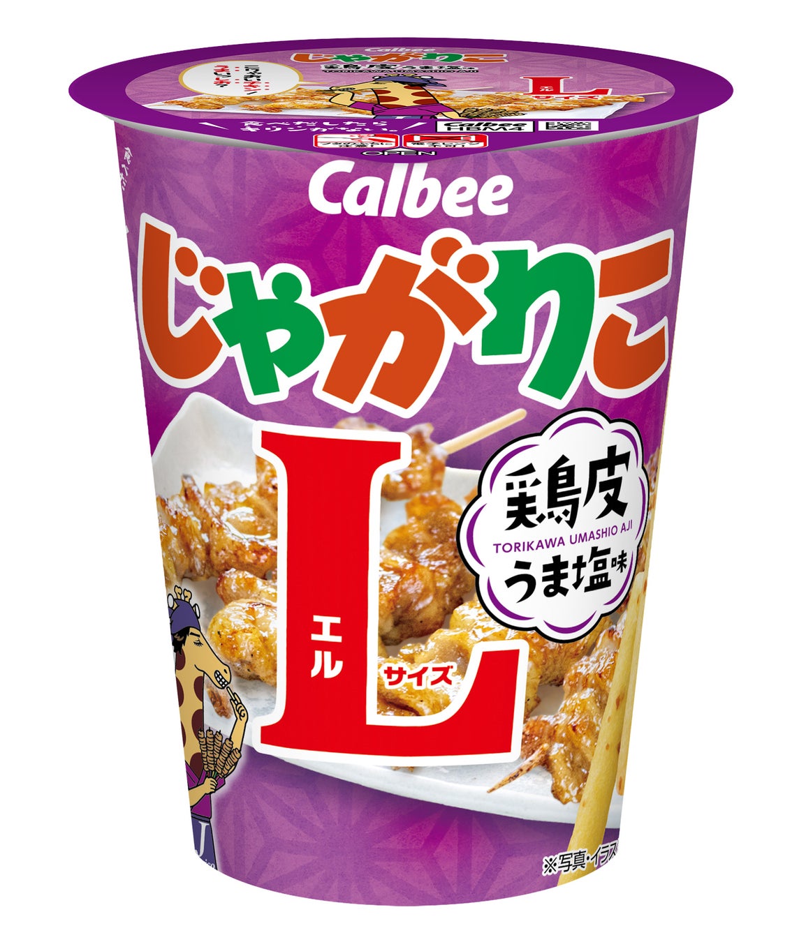 “ロング”で“ラージ”なLサイズから新商品! 炭火で焼き上げた香ばしい鶏皮を再現『じゃがりこ 鶏皮うま塩味Lサイズ』
