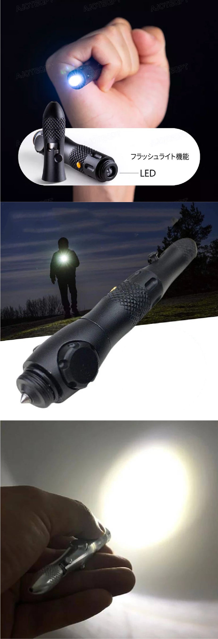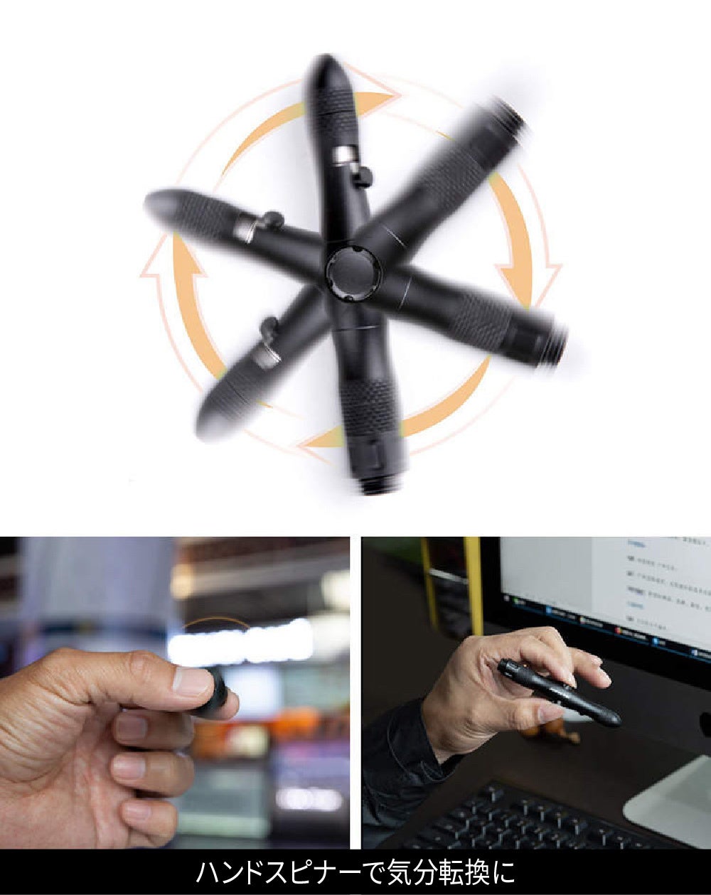 もしもの時に役立つ災害対策用サバイバル・ペン【ハンドスピナー/ライト/ガラスブレーカー機能】