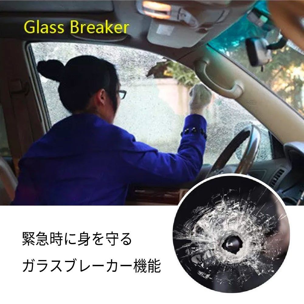 - 緊急時の脱出にガラスブレーカー機能