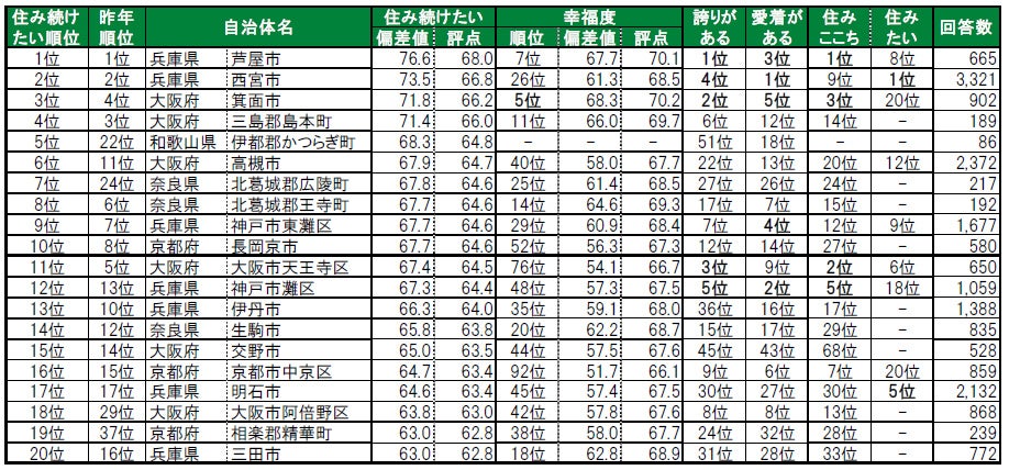 いい部屋ネット「街の幸福度 & 住み続けたい街ランキング2024<関西版>」(街の住みここちランキング特別集計)発表