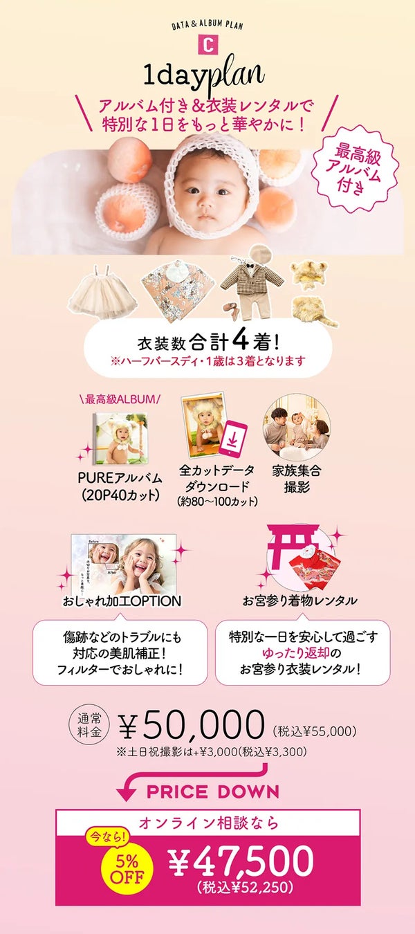 【特別な1日を華やかに】衣装レンタル&アルバム付きで叶える、ベビー記念の夢を詰め込んだ「1dayプラン」新登場!